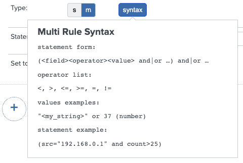 There are two types of rules: simple rules that only compare one field against a value or multi-rules that support multiple field-value conditions.