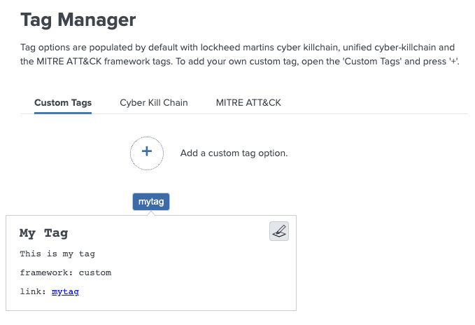 Two additional tabs are available under the Tag Manager. For your convenience, we have added tags for the Cyber Kill Chain and Mitre Att&ck Framework to AME. For the latter, we have implemented an update function to keep the tags up-to-date.
