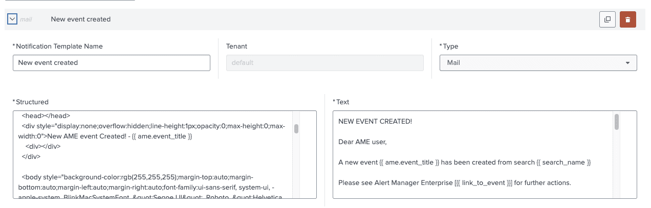 Administrators can now define Notification Schemes, Notification Targets, and Notification Templates within AME. Notification Targets refer to the delivery endpoints, such as Email, Slack, Teams, etc. Additionally, the system supports Splunk Alert Actions and Webhook targets, enabling users to develop REST/HTTP-based integrations with customized payloads derived from event data using the Template system.