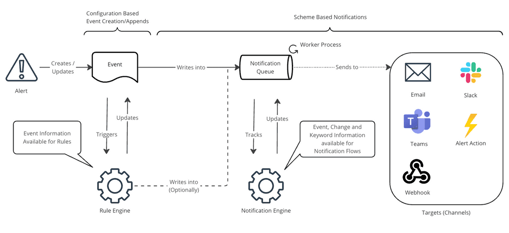 The notification functionality in Alert Manager Enterprise (AME) version 3.0 has been significantly enhanced to cater to both human recipients and automated systems. Integrating the Rule Engine and the new Notification Engine allows for sophisticated conditional evaluations, enabling precise control over the timing and content of notifications sent to teams or external systems.
