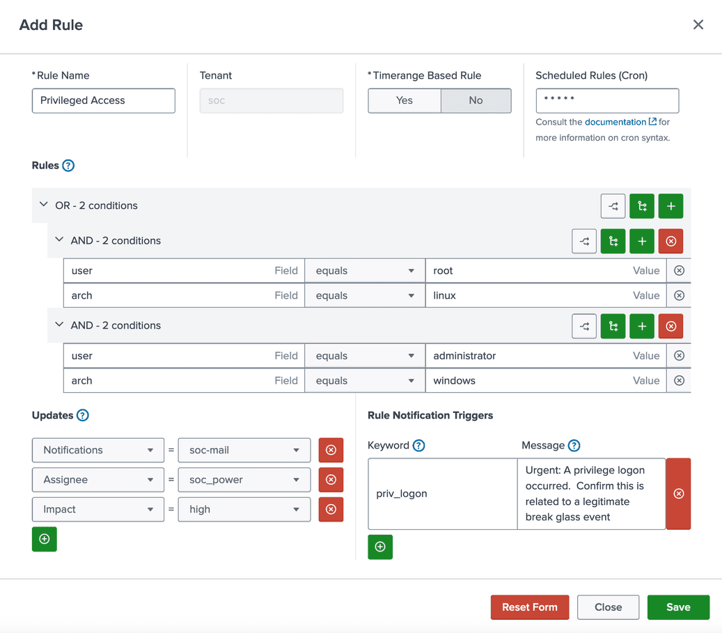 Triggering a notification and set event attributes when a privilege logon event occurs